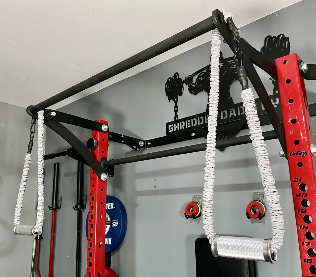 Here’s a cable crossover set up with Stroops resistance bands that have an outer cover.