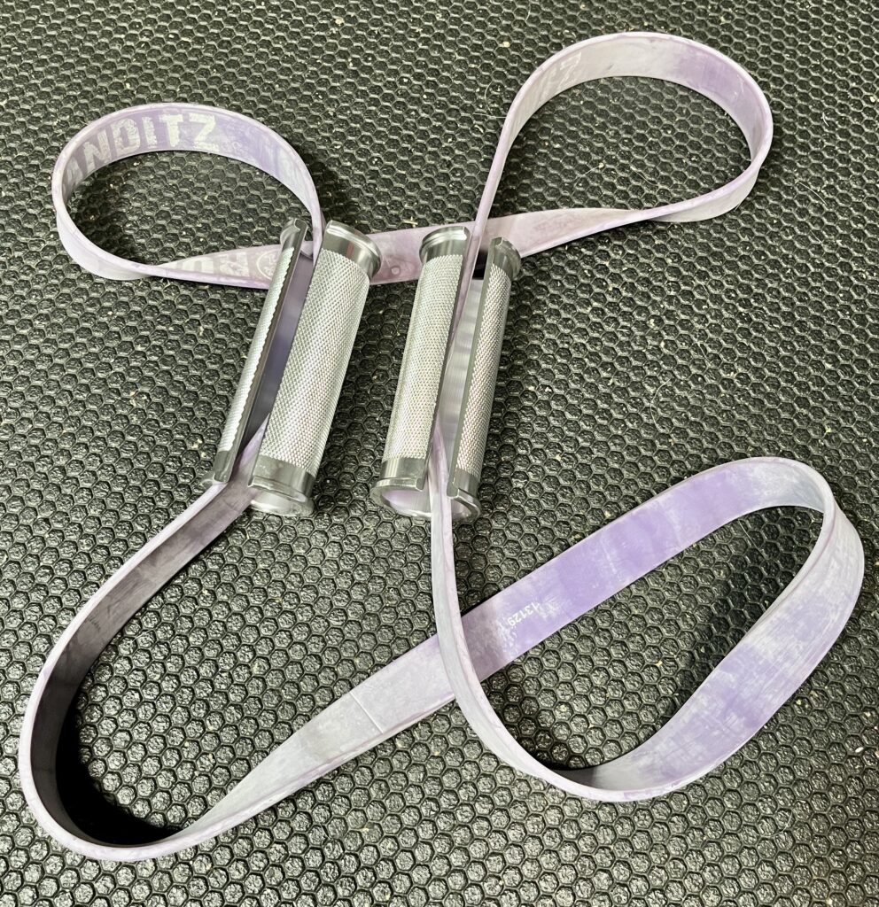 Vector Grips are knurled aluminum handles for resistance bands that add comfort to resistance band workouts.