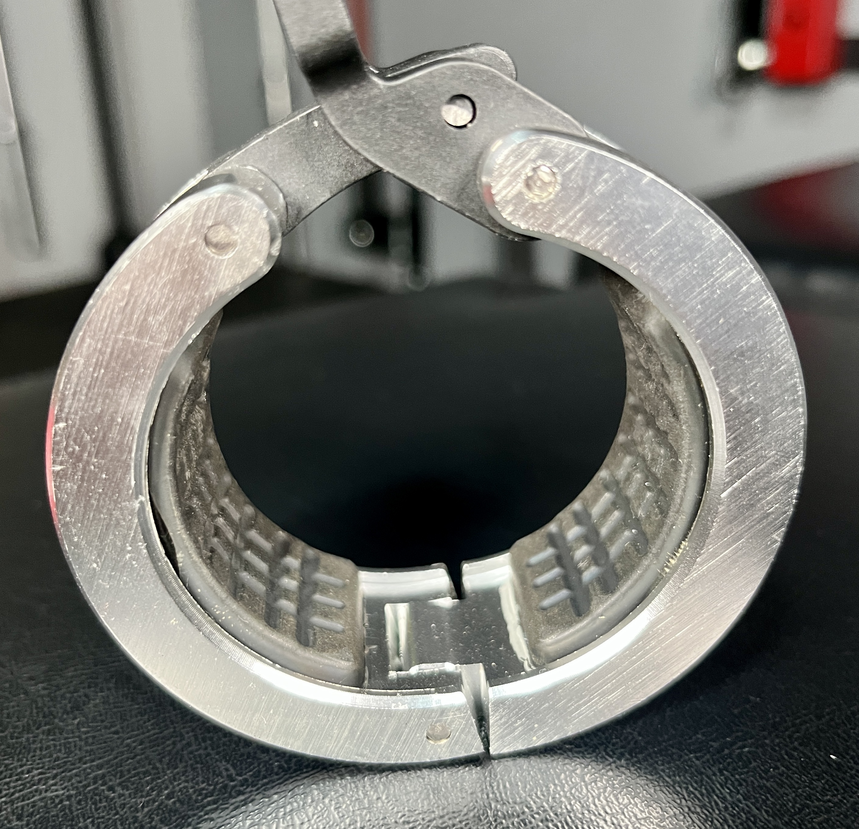Here I unlocked the barbell clamp to show you the ridges under the tab.