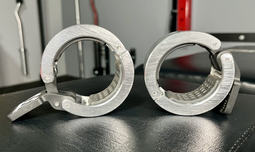 I like how the aluminum collars clamp down on my barbells and keep the plates from moving.