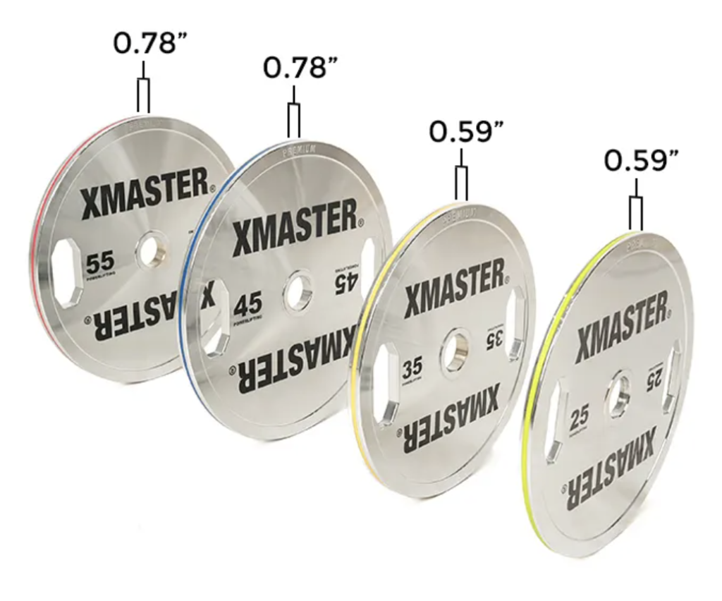 XMaster’s 45 lbs chrome plate is 13/16″ thick so it’s only 1/16″ thicker than Weight It Out’s.