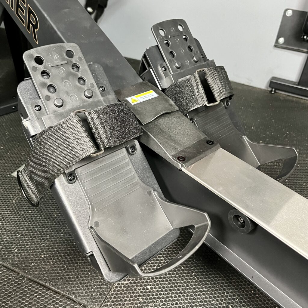 The pedals are made of hard flexible plastic so they can bend with my feet while I’m rowing.