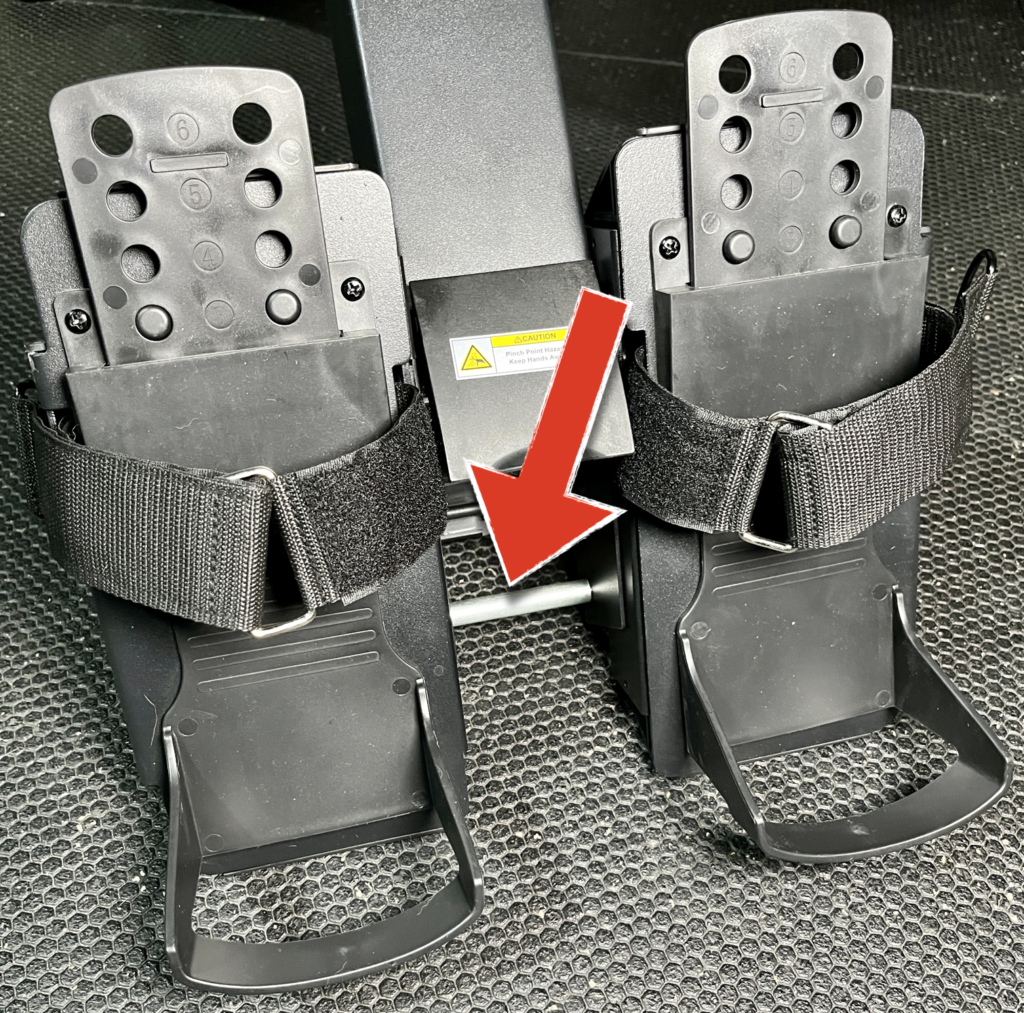 And that falls right into this metal rod that’s in between the pedals.